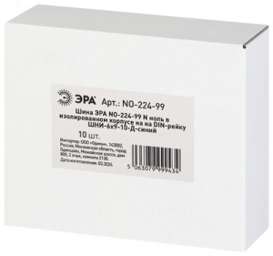 Шина NO-224-99 N ноль в изолированном корпусе на DIN-рейку ШНИ-6х9-10-Д синий