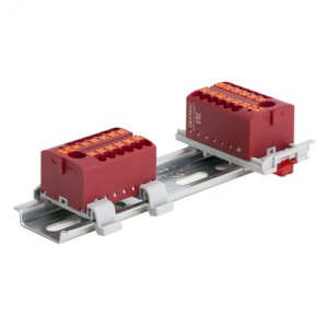 Блок распределительный, зажим push-in, 6 точек подключения 2,5 кв.мм, красный
