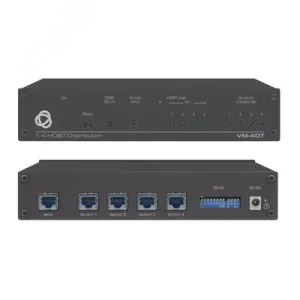 VM-4DT — высококачественный усилитель-распределитель сигналов HDBaseT с разрешением до 4K (UltraHD) 60 Гц (4/2/0). Он выполняет перетактирование входного сигнала HDBaseT и компенсацию АЧХ кабеля, после чего распределяет сигнал на два одинаковых выхода. VM-4DT поддерживает дистанцию передачи сигналов разрешением 2K до 70 м и 4K до 40 м при использовании кабелей BC-UNIKAT. Максимальная скорость передачи данных составляет 10,2 Гбит/с (3,4 Гбит/с на графический канал). VM-4DT совместим с приёмниками и передатчиками сигнала HDBaseT по витой паре, а также поддерживает разрешения до 4K (UltraHD) 60 Гц (4/2/0) 8 бит на канал.