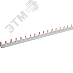 Шина соединительная типа L-PIN (штырь) Navigator серии NBB предназначена для электрического и механического соединения групп автоматических выключателей, дифференциальных автоматов и выключателей, выключателей нагрузки в шкафах, щитах, сборках. Токоведущая часть изготовлена из электротехнической меди, изолирующий профиль из пластика, не подерживающего горение.