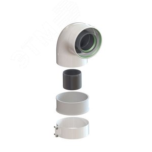Отвод 90 град коаксиальный стартовый d 60/100 мм с хомутом и втулкой