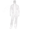 Комбинезон с эластичным капюшоном. Нетканый материал – 100% полипропилен. Замок-молния, закрытая защитной планкой. Эластичная резинка вокруг лицевого выреза капюшона, на талии, манжетах рукавов и лодыжках. Индивидуальная упаковка. Защита- от твердых частиц - 5, от брызг кислот, щелочных веществ и воды - 6.Материал- 100% полипропилен, плотность - 50 г/м?. 3 слоя- полипропилен вспененный полипропилен – полипропилен (SMS).
