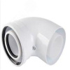 Универсальный промежуточный раструбный отвод коаксиального дымохода (труба в трубе). Угол 90 градусов, присоединение мама/папа.