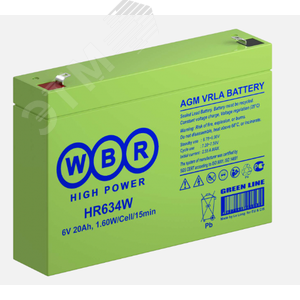 Аккумулятор WBR HR634W - герметизированные, выполненные по технологии AGM, батареи общего применения со сроком службы до 8 лет в буферном режиме или 260 циклов заряда-разряда в циклическом режиме при 100% разряде. Эти высокоэффективные перезаряжаемые батареи не требуют обслуживания в течение всего срока службы.