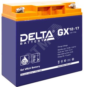 Герметизированный VRLA cвинцово-кислотный аккумулятор Delta GX 12-17 напряжением 12В и емкостью 17Ач изготовлен по технологии GEL (композитный гель вместо электролита). Устойчив к глубоким разрядам. Корпус изготовлен из негорючего ABS пластика. Срок службы аккумулятора достигает 15 лет. Аккумулятор предназначен для работы в режиме постоянного подзаряда (буферный режим) или в режиме разряд-заряд (циклический режим). Обладает низким внутренним сопротивлением и саморазрядом.
