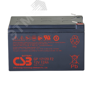 Аккумуляторная батарея для ИБП CSB GP 12120 создана по AGM-технологии, по типу герметичного свинцово-кислотного устройства (SLA). Батарея может подавать как резервное, так и основное питание к оборудованию. Емкость аккумуляторной батареи для ИБП CSB GP 12120 равна 12 А•ч, такого количества хватает для полного заряда нужной техники. В буферном режиме аккумулятор серии GP (широкого применения) эксплуатируется 5 полных лет, или 250 циклов работы.Аккумуляторное устройство CSB GP12120 является необслуживаемым, не нужен долив жидкости. Односторонний клапан предохранения дает защиту, исключается вероятность взрыва и выделения газа из-за герметичности самого устройства батареи. Ударопрочный корпус спасает от повреждений при переносе. Широкий диапазон температуры для хранения аккумулятора: от –15 °C до +40 °C.