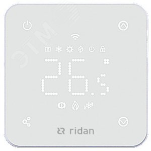 Ridan RSmart — электронный термостат с минималистичным дизайном, предназначенный для точного контроля и управления температурой воздуха или пола. Эта модель может подключаться к сети Wi-Fi. Совместим с рамками серий. JUNG - ECO Profi, A 550. Merten - System M. ABB - Basic 55. Werkel - все рамки 55х55. LIREGUS - все рамки 55х55. Berker - B7, Q1, Q3, Q7, S1. Совместим с рамками после механической модернизации. GIRA - System 55 (Standard 55, E2, E3, Event, Esprit и ClassiX). Schneider Electric - Atlas Design. Основные функции. Сменные рамки (стандартный размер 55х55мм). Удалённое управление через приложение Smart Life в смартфоне (программирование). Голосовое управление Яндекс Алиса. Функция открытого окна. Эко-режим. Поддерживает датчик температуры пола. Калибровка датчиков температуры. Защита от замерзания. Настройка яркости подсветки дисплея.