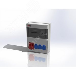 Устройство распределительное AlpenBox. Изделие имеет вход сальник - М25, УЗО 4P/40A/30mA. Выход розетки Schuko - 3, розетки СЕЕ 16А 5р - 1. Защита на выходе - автоматический выключатель - 16A/1p - 3шт. 16A/3p - 1шт. Размеры корпуса составляют 310x436x148. Степень защиты изделия IP44
