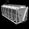 V-образные драйкулеры предназначены для охлаждения теплоносителя, отводящего избыточную тепловую энергию от различного рода технологических систем. Охлаждение теплоносителя происходит с помощью осевых вентиляторов, которые нагнетают воздух из окружающей среды. Благодаря тому, что теплоноситель циркулирует по замкнутому контуру, не происходит его испарения. В качестве хладагента, используется вода или смесь воды и этилен/пропиленгликоля, в зависимости от температуры окружающей среды.