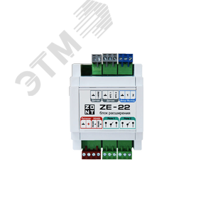 Блок расширения ZE-22 для универсальных контроллеров - предназначен для расширения количества входов и выходов универсальных контроллеров ZONT серии PRO. Поддерживает подключение цифровых и аналоговых проводных датчиков температуры. Поддерживаемые интерфейсы – RS-485, 1-wire. Крепление на DIN-рейку.