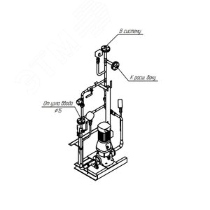 Модуль подпитки системы (или просто подпиточный модуль) используется в электрических или электронных системах для обеспечения стабильного и надежного питания узла ввода (например, микроконтроллера, датчика или другого устройства ввода данных). Основная цель подпиточного модуля - обеспечить постоянное питание узла ввода, даже если основное питание системы временно пропадает или подвергается внезапным изменениям. Это позволяет предотвратить потерю данных или некорректное функционирование устройства ввода в случае возникновения проблем с основным источником питания. Оснащён насосом.