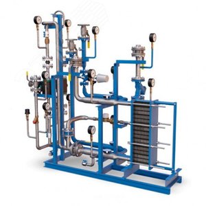 Модуль ГВС одноступенчатый с 1 теплообменником (без резерва) 50Г3_ГВС(32/25/20)РТ(15)2Н(25) служит для автоматического поддержания уровня температуры горячей воды с учетом требований санитарных норм. Он оснащён одним теплообменником. Шкаф управления выбирается в зависимости от количества и назначения систем, предусмотренных в тепловом пункте. Внутренний контур ГВС выполняется из оцинкованных или полипропиленовых труб, по желанию заказчика.