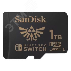 Карта памяти SanDisk Nintendo MicroSDXC UHS-I card for Nintendo Switch, Zelda Edition, объёмом 1 ТБ, отличается высокой скоростью передачи данных (класс скорости 10) и идеально подходит для использования в различных устройствах. Благодаря ударопрочному корпусу и пластиковому материалу изготовления, эта карта надёжна и долговечна.