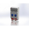 Устройство распределительное AlpenBox, настенное, пластик. Изделие имеет вход сальник - М32, УЗО 4P/63A/30mA. На выходе розетки Schuko - 2, розетки СЕЕ 16А 5р - 1, розетки СЕЕ 32А 5р - 1. Защита на выходе - автоматический выключатель - 32A/3p - 1шт. 16A/1p - 2шт. 16A/3p - 1шт. Размеры корпуса составляют 297x504x177. Степень защиты изделия IP67.