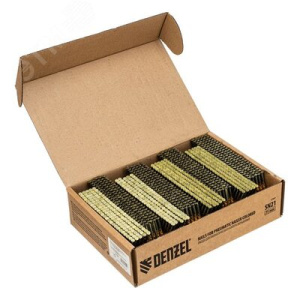 Гвозди Denzel 57697 типа SN21, длиной 75 мм и диаметром 3,05 мм, с крашеной поверхностью, 2000 шт. в упаковке, - расходники для пневматического нейлера. Используются для скрепления различных материалов, будут полезны во время сборочных и отделочных работ.