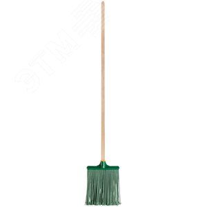 Метла пластиковая №1, плоская мягкая с деревянным черенком 260х330х1480 мм