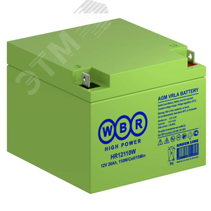 Аккумуляторные батареи WBR HR 12110W - герметизированные, выполненные по технологии AGM, батареи общего применения со сроком службы до 8 лет в буферном режиме или 260 циклов заряда-разряда в циклическом режиме при 100% разряде. Эти высокоэффективные перезаряжаемые батареи не требуют обслуживания в течение всего срока службы.