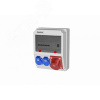 Устройство распределительное устройство AlpenBox, настенное, пластик. Изделие имеет вход сальник - М25, УЗО 4P/40A/30mA. На выходе розетки Schuko - 2, розетки СЕЕ 16А 5р - 1. Защита на выходе - автоматический выключатель - 16A/1p - 2шт. 16A/3p - 1шт. Размеры корпуса составляют 222х284х122. Степень защиты изделия IP44