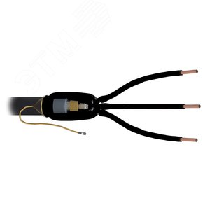 Муфта предназначена для оконцевания трехжильного кабеля с броней с изоляцией из сшитого полиэтилена и экраном из медных проволок на напряжение до 10кВ для внутренней установки. В составе муфты применяются трубки стресс-контроля снижающие риск пробоя изоляции на срезе полупроводящего слоя и специальный герметик со свойствами выравнивания напряженности электрического поля. Использование изолирующей антитрекинговой трубки снижает риск пробоя по поверхности изоляции. Термоплавкий клей, нанесенный на внутреннюю поверхность термоусаживаемых трубок, обеспечивает полную герметичность муфты после монтажа. Провод заземления формируется из проволочного экрана кабеля, пружины постоянного давления и оконцовывается наконечником под опрессовку.
