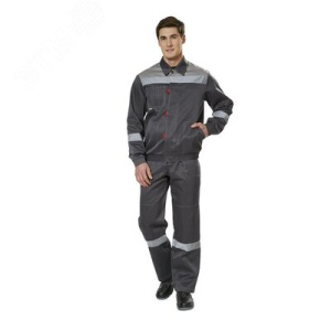 Костюм мужской рабочий состоит из куртки и полукомбинезона. В куртке - супатная застежка на пуговицы, кокетки из отделочной ткани, воротник отложной, эластичная регулировка объема по низу куртки рабочего костюма, нагрудный карман на правой полочке с отделением для ручки, накладные карманы в нижней части куртки костюма рабочего, рукава с манжетами на пуговицах по низу. Полукомбинезон рабочего костюма Тимбер - с накладными карманами на передних половинках, спереди в области груди карман с несколькими отделами для инструментов, застежка сбоку на пуговицы, регулировка объема по талии за счет эластичной вставки сзади, лямки на пластиковых застежках (фастексах), регулирующихся по длине за счет эластичной резинки, гульфик на молнии.