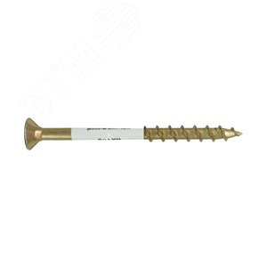 Саморезы имеют потайную головку, шлиц в форме шестигранной звезды TORX Т25, неполную крупную резьбу, острый с ребрами наконечник, который предотвращает раскалывание древесины. Не требуют предварительного засверливания. Изготовлены из стали.