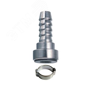 Переходник для соединения компрессорного шланга с внутренним диаметром 8 мм и инструмента. Байонетное соединение, обжимное кольцо 6х13 мм в комплекте.