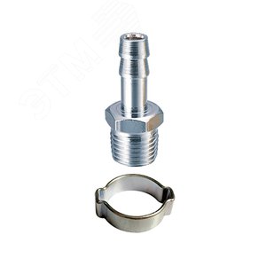 Для соединения компрессора шлангом с пневмоинструментом. Крепление к инструменту - резьба 3/8'' (папа), к шлангу - ''елочка'' (10 мм). Обжимное кольцо 10х15 мм в комплекте.