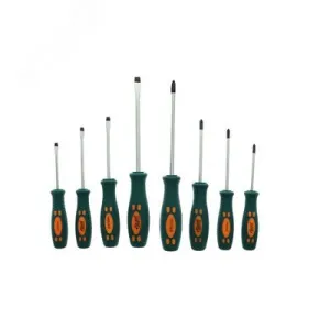 Набор отверток, 8 шт Sturm 1040-01-SS8 включает в себя самые популярные типоразмеры. Хромоникелевое покрытие надежно защищает рабочие части от коррозии. Данная модель изготовлена из Cr-V стали и имеет твердость 54-56 HRC. Это увеличивает рабочий ресурс и значительно продлевает срок службы инструмента.