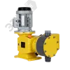 Механические мембранные дозировочные насосы серии GM оснащены асинхронными электродвигателями. Насосы обладают высокой прочностью и надёжностью. Насосы поставляются с двойной композитной мембраной из ПТФ. Для изменения производительности можно менять как длину хода вала, так и частоту. Эти насосы просты в монтаже, эксплуатации и обслуживании. Это экономичные дозировочные насосы для дозирования реагентов, таких как сульфат алюминия, полимеры, щелочи, гидроксид натрия, кислоты, средства против накипи и пеногасители, хлор и так далее.