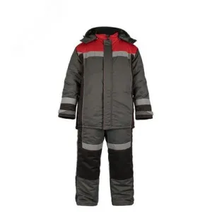 Костюм Диксон (куртка с полукомбинезоном), утепленный, серый/черный/красный, р. 48-50/170-176