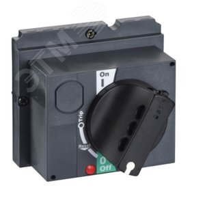 Стандартная поворотная рукоятка для автоматических выключателей серии SystemePact CCB DC на ток 125 А, установка – фронтальная, форма основания – квадратная, цвет – черная. Поворотная рукоятка имеет эргономичный дизайн и упрощает управление автоматическим выключателем при замыкании и размыкании электрических цепей в распределительных щитах.