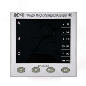 Многофункциональные цифровые электроизмерительные приборы PD194PQ-2K4T торговой марки КС предназначены для измерения электрических параметров в сетях переменного тока с отображением результатов измерения в цифровой форме, передачи результатов измерения по цифровым интерфейсам, аналогового преобразования параметров электрической сети в унифицированные сигналы постоянного тока и напряжения. Четыре кнопки на лицевой панели для просмотра на индикаторе измеряемых величин и настройки прибора (вход в меню настройки защищен паролем). Так же настройка возможна при помощи программы iPMS. Переключаемая программно схема подключения приборов - 3 или 4-проводная.