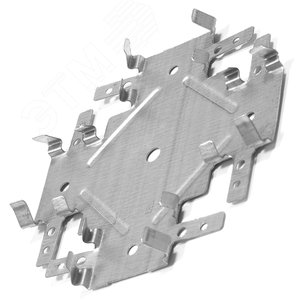 Соединитель профилей ''Краб''- это одноуровневый соединитель для перекрестного монтажа профилей к потолку, фасаду или другому несущему основанию. Предназначен для крепления перпендикулярно расположенных профилей в одной плоскости при монтаже подвесных потолков из гипсокартона. Такой вид крепления позволяет фиксировать подвесы максимально близко друг к другу, обеспечивая идеально ровную поверхность потолка. При правильном вхождении профиля в соединительный ''Краб'' (вхождение до упора) произойдет щелчок. После чего необходимо отогнуть усики, окончательно закрепив профиль в конструкции.