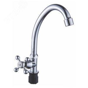 Смеситель для кухни на одну воду АНТЕЙ, серия Классик. Цвет хром. Кран-букса – 12 дюйма 20 шлиц, латунная с керамическими пластинами, угол поворота 90 градусов. Излив высокий, поворотный, 360 градусов. Высота (корпус + излив) 256 мм. Аэратор пластиковый, съемный, внутр. резьба 22мм.
