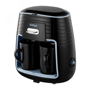 Капельная кофеварка КТ-7447 готовит ароматный чёрный кофе из молотого кофе. Она позволяет легко и быстро приготовить кофе на две кружки одновременно. Две керамические кружки объёмом 145 мл идут в комплекте, можно использовать и другие подходящие кружки. Переведите переключатель в положение ''I'' для включения кофеварки и в положение ''О'' для выключения. Когда устройство включено, горит индикатор переключателя. В капельной кофеварке при приготовлении кофе вода нагревается, а затем подаётся в фильтр с молотым кофе. Ёмкость резервуара для воды составляет 250 мл. Многоразовым фильтром можно пользоваться неограниченное количество раз. Сетка фильтра изготовлена из нейлона. Фильтр вмещает до 15 г кофе.