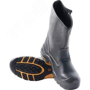 Верхний? слои? сапог выполнен из полиуретана и обладает амортизирующими свойствами, гасит ударные нагрузки, а также придает обуви легкость, комфортность и повышенные теплозащитные свойства. Подошва - двухслои?ная ПУ-Нитрил, устойчивая к воздействию повышенных и пониженных температур. Отсутствуют металлические детали.